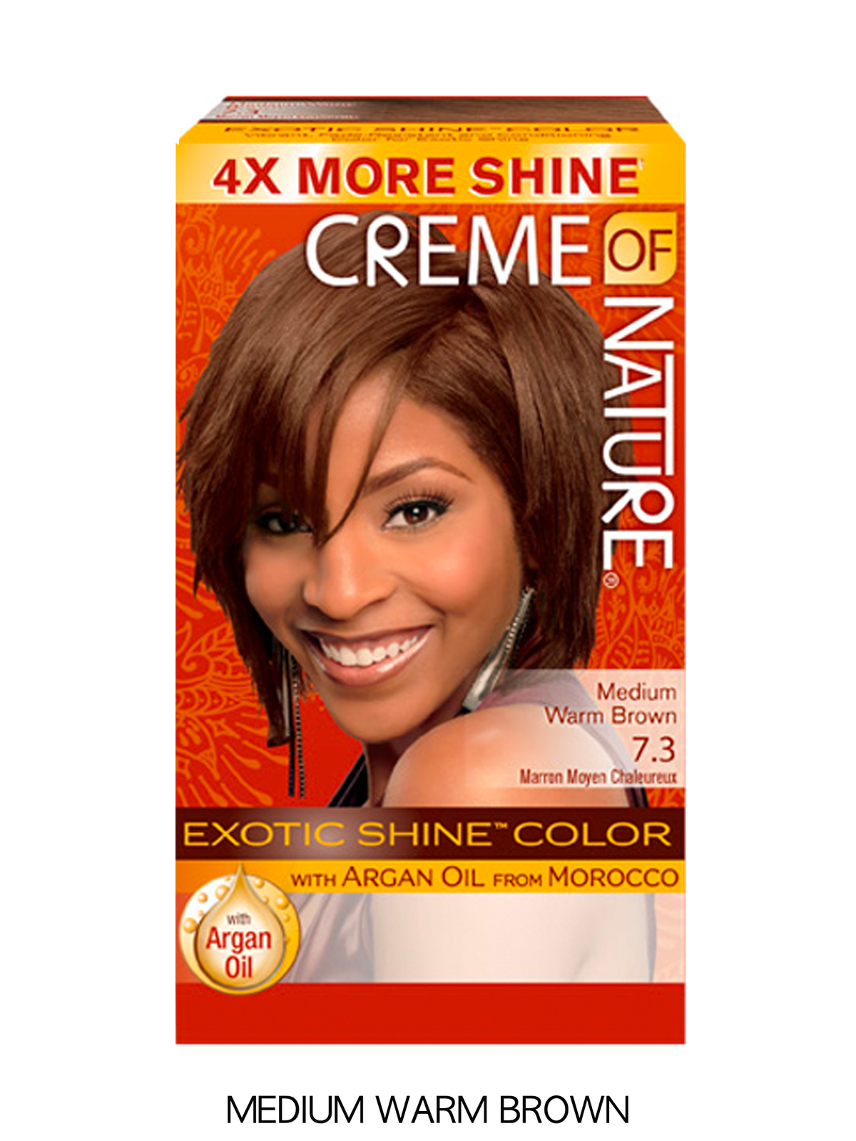 Up to 4 cash back Shop for Schwarzkopf Hair Color in Hair Color. Creme of Nature Liquid Permanent Hair Color Creme of Nature Exotic Shine Color is a permanent hair color that is infused with double the conditioning power of Argan Oil and strengthening. Creme of Nature Exotic Shine Color With Argan Oil Light Caramel Brown 92 Fluid Ounce.